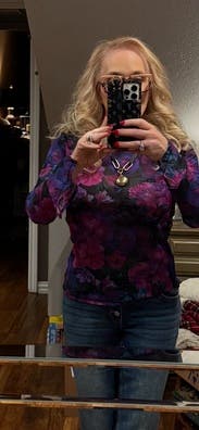 Got lots of compliments in this shirt. So easy to wear. Sheer so needs bodysuit or be