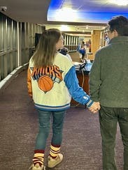 The Terez Knicks Bomber Jacket is a sporty, vibrant outer layer featuring a bold team-inspired design and a classic bomber silhouette. Pair this fun jacket with black joggers or leggings and sneakers for a comfortable, spirited game-day look.