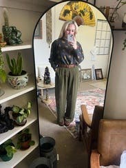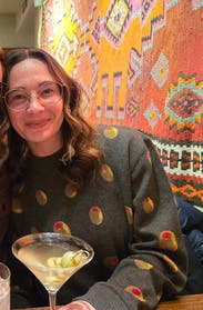 People love an olive! 🫒🫒 This sparked several martini conversations and offers to buy me one🍸 It’s that fun, conversation sweater It’s also soft, came new with tags, it’s a tad oversized but still flattering Just soooo easy My hubs and I were sad to see it go but $300 for a sweater needs some mulling and a second rental - bc IRL how many times can you wear a zany olive sweater before the novelty wears off