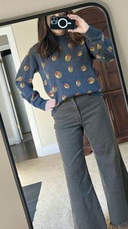Cute sweater that got some compliments. Sleeves ran a bit long but I was able to push them up so it wasn’t too bothersome.