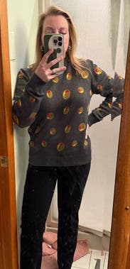 Such a fun sweater! I wanted to buy it. Comfortable and fits well.
