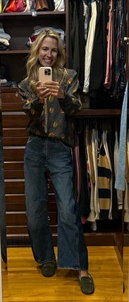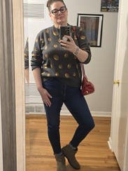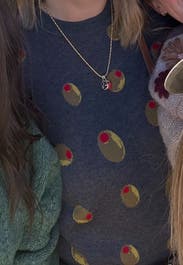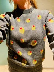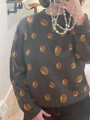 I absolutely love the Terez brand and can never resist their quirky sweaters! I already own the croissant and snail ones, so when this olive sweater popped up, it went straight into my cart. The quality is excellent—super soft and cozy, just like all their pieces. One small note: the neck hole runs a bit snug, so if you haven’t rented from Terez before, keep that in mind. I wore it to work today and received compliments right away! Since my office is always freezing, I live in sweaters, and this one is a fun conversation starter. By the end of the day, it might even inspire me to have a martini—it seems only fitting with all these olives! 🍸