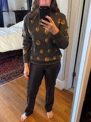 Sweater is super cute but a bit boxy. It fits more like a sweatshirt. It will be fun for casually going out. Very whimsical. Also I love martinis so I’m especially fond.