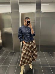A denim shirt but make it fashion. I love the shape. Great waist cinching and the sleeves make it so flattering