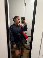 This top was very chic! Loved pairing it with a skirt for a fun, flirty look. Also paired it with baggy pants for another occasion. Fit perfectly and could be worn with basically anything!