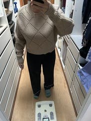 I loved how warm this sweater was. The neutral color made it easy to style. I didn't like how it felt like there was extra fabric on the sides. The armpit is exaggerated so it's big and sits low. Makes the sweater fit feel bulky. After wearing it for a while I didn't notice it as much. But it would bunch when trying to wear a jacket.