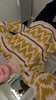Seam on the shoulders hit low which felt weird at first but didn’t affect the fit at all. I think it’s a cute sweater with fall boho colors