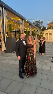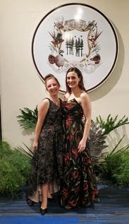 Wore this for a black tie fundraiser. Beautiful dress- detailed embroidery (not printed) and perfect color palette for the fall. Dress felt high quality. Received tons of compliments Fit: 12 was too tight but 14 was slightly large on top. Fixed it by wearing a more padded bra. Zipped up comfortably and did not need assistance. Dress felt secure. Worn with 2-3 in heels and length was perfect (I’m 5’1”) Would rent again!