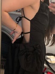 Wore it to a wedding welcome reception. Loved the open back. You can tie it tight. Didn’t care for the pockets but still a great dress.