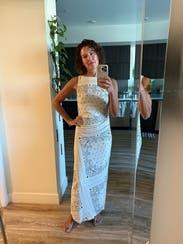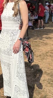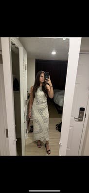 Wish I had a better photo in this dress because it was a winner! Fit beautifully and has a great summery print that feels fun but classic. I paired it with simple strappy sandals and a raffia clutch and it was the perfect summer date night fit. Felt chic & received several compliments. Would rent again for summer vacations or events.