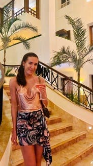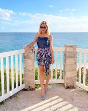 I've had this sexy top saved for almost a year and it paired so well with this skirt I rented! It was for a trip to Mexico, which was perfect considering the skirt's colors of navy + pink plus the combination of seashells in the paisley design. I'm usually a size 2 in bottoms but I do carry some "junk in the trunk" so I'm glad I went a few sizes up than normal because it is form fitting. The front ribbon was my favorite part as it made me feel so sassy and I received lots of compliments!
