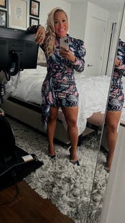 I loved the print on this skirt. It's very busy so I paired it with a plain white crop top. Definitely size up a size or two. Lots of compliments.