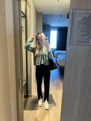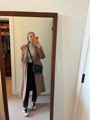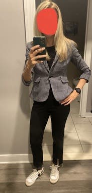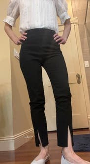 These pants were the perfect take on typical black dress pants. The back zip was fantastic and I received so many compliments on the front slits - looked great with mules! They pick up every single bit of lint and dust though, only reason I’m not rating five stars.