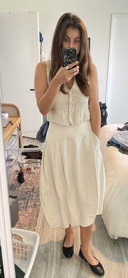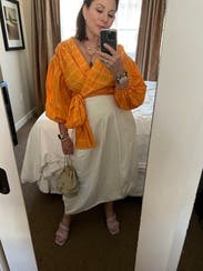 Loved this Tibi skirt so much I bought it from RTR! I wore it first to a screening event in Napa with the Acler Orange wrap top, so many compliments. Dressed it down with the chambray top and sandals for the day. I have 10 ways to wear this. Great investment for my closet. Timeless. Definitely a WOF(without fail) piece. primary size is 8 rn. Bought in a 6 so it sits higher on my waist.