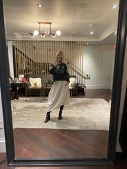 I love this skirt! If it wasn’t so expensive, I would buy in a heartbeat! Very flattering and true to size