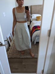 Totally obsessed with this skirt. Very cool cut, haven’t seen anything like it. Epitome of lightweight/breezy fabric, yet still velvety soft; perfect wear for the dog days of summer. I wore this so many times with a variety of tops and it was always fabulous. Nude underwear is a must as it has no liner. Skirt does stretch around the waist & fall a little bit the more you wear it. Somehow it made me look skinnier than I am, which was cool 😎 Would keep if I could </3