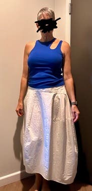 Such a fun skirt that you can dress up or down! So many compliments and very flattering... will be renting again.