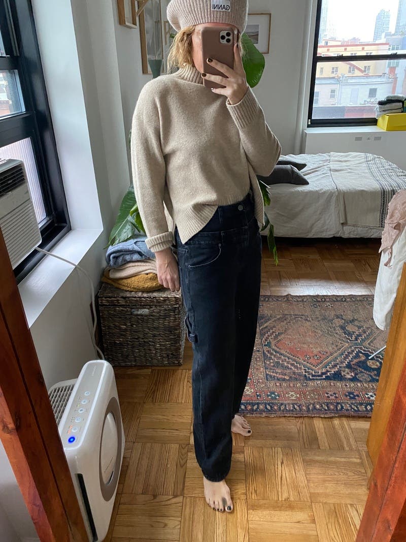 The extra wide waistband on these black denim jeans by Tibi gives your favorite off-duty staple a dynamic look.