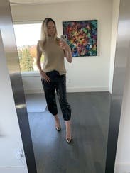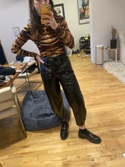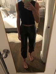 Had so much fun with these, and pants rarely fit how I hope! Could have probably gone up 1 size because the hips were a little snug but it still worked. Really flattering, especially if you have short legs. Would have purchased except I only have so many opportunities to wear shiny leather pants.