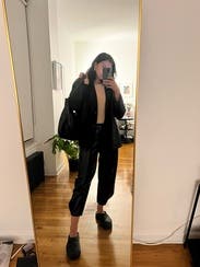 These pants were perfect for a fun outing in NYC. I got so many compliments on the whole fit. I went to a work function during the day and then an event at night, and it was a great transitional piece. Especially paired with this sheer Ulla Johnson long sleeve from RTR, I thought the fit really came together. My only real critique is that the pants are MASSIVE in the waist. Probably a good 1-2 sizes too big. I had to tie the back with a shoelace.