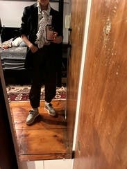 Unique pants! Loved the cut and fun placement of the back pockets. Pants are a faux leather that is unusually loud when walking. I have other faux leather pants that don't have this same issue - it's the material. It's a loud and sticky combo. I nicknamed these my "squeaky pants!" However, the pants are comfortable and despite the noise, I'd probably rent again!