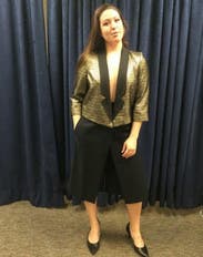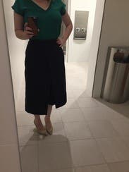 These pants are perfect in fit and style. The half-skirt, half-culotte look gained me tons of compliments from strangers and coworkers. It's such a unique, simple look. It also complimented my larger than average butt, which the average pant certainly can't do. The material is high quality and of perfect thickness, which is great for the tucked-in style. I'll be renting this one over and over again.