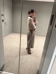 The model is 5'10" and wearing a size 4.