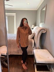 Loved this piece. Could’ve definitely gone for the small but made the medium work. It was a bit long but I wore it as a shacket anyway. Soft, versatile, comfy. Would definitely purchase and wear regularly if the price was right.