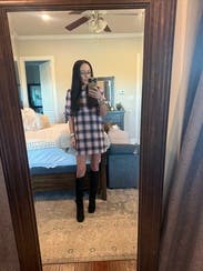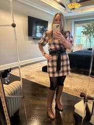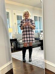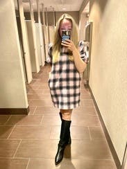 Great dress for fall/winter. So easy to wear! Wore black over the knee suede boots. Good for work or play 👍
