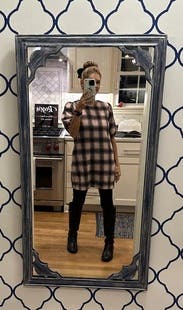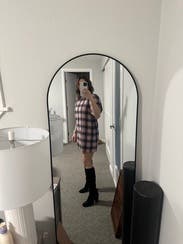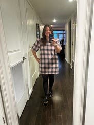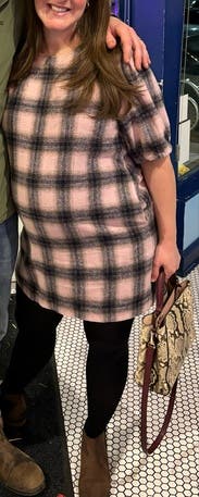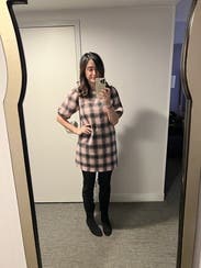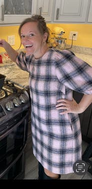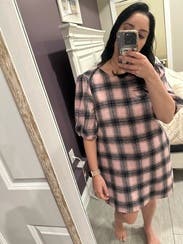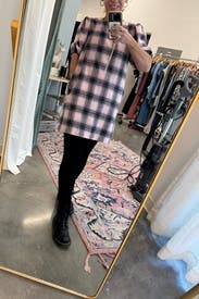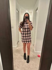 The pink plaid worked well for a 90s party. Dress was warm and a great fit for dancing, but it is on the short side.