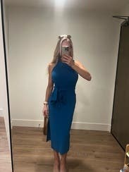 Love everything about this dress! The color, the fit and style. It was perfect for my work function. Like other renters, I tied the belt in the front and felt it was more flattering (and more comfortable than sitting with a knot in your back). I love most everything I rent from Toccin and this dress was no exception!