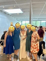 I got lots of compliments on this color and shape. I’d say it stretches out during the day. It also had a strange way of clinging to my spanx. It wasn’t too tight, but the dress was I guess sitting heavier on the spanx and showing the lines. Would rent again. Beautiful