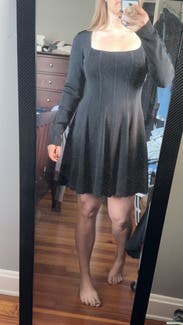 This dress was a little big on me, but since I wore it it a Friends-giving dinner, it worked perfectly! The fabric was a bit thicker and sturdier than I expected so definitely not a summer dress, but it was pretty comfortable when I wore it in November. It covered everything I needed it to (and I think it would even if you're tall) and the neckline was perfect! I knocked it a star because the fabric was a bit itchy after a while.