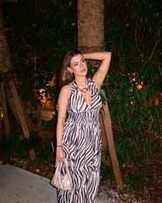 I wore this multiple times on vacation. It has a beautiful silhouette and fun pattern. It fits well for the most part, the cinched waist is very comfortable but the chest area was a bit too large for me. Nothing that couldn’t be improved by tying the halter tighter but there was a bit of side boob because of it and sizing down might solve this too! Still loved this dress regardless and would rent again!