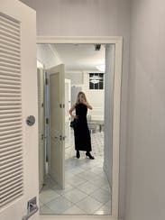 The material of this dress makes it 100x better- it was so comfy! The length/ fit was prefect for petite and I didn’t even have to wear a bra. Don’t forget to steam it like I did :)