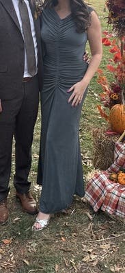 Wore this to a formal awards ceremony. Surprisingly comfortable for such a special occasion dress. Loved the color instead of the traditional black. The ruching is very flattering and the back while low keeps it classy. I ordered the LL. I loved & wanted the length but found the dress to be slightly big in certain areas… ML would have been perfect.
