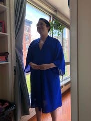 Oh boy I should have read the reviews- this is awful and looks like a graduation robe on. Pictured on my bf for reference. Maybe it would be ok if it was a little shorter but uhhhhhhh yeah this was ridiculous.