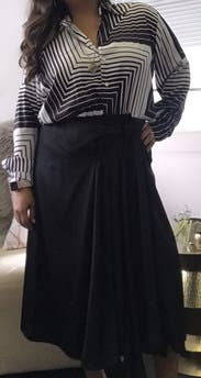 Although this dress involves a lot of material and runs a bit large, the design is interesting and the item is comfortable to wear. Good for conservative office wear.