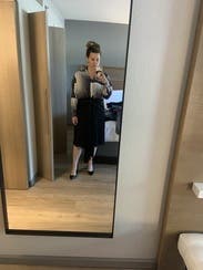 This was a fun work option. The tie in front that brings everything together can be bulky so I didn't knot it. I had to pull it tight all day, which didn't bother me but I could see that being annoying. I may have been able to size down, looking back. Over all a different work option, very comfortable