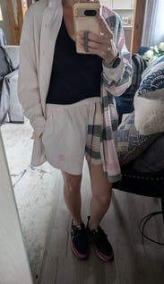 I love this. It runs slightly large. I wore it with biker shorts on zoom. I am breastfeeding right now and it's so post baby friendly. Should've gone down one size!