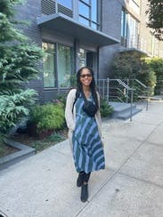 Wore this for a birthday weekend in NYC. Although it's more of a summer dress, it looked great with boots and a coat. And it has pockets! The neckline and tie waist helped break up the stripe pattern.