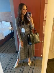 This is my second time renting this dress for an all day work event and then flying home in it. Travels well and toes the line between different levels of work attire. It's very comfortable. The tie will come undone if you don't tie the bow tightly, which is why this doesn't get 5 stars from me.