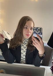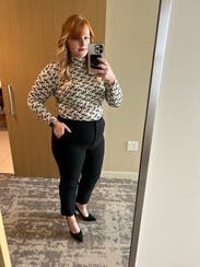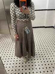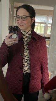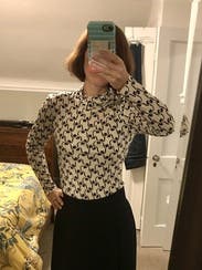 Rented this for work, though it would look cute on my Zoom calls. The top runs small: tight sleeves, small through chest and it was short in length. I would size up if you try it, skip it if you are tall, busty or muscular in the arms.