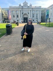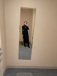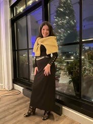 Wore it to my first anniversary dinner in Paris. Loved the fit. Ordered a size up so it would fit over my pregnant belly. It looked great and very luxe.