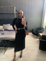 Though the material is quite thin for winter I loved the fit and style of this dress. The length is great for tall girls and it was super stretchy over my little baby bump.