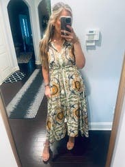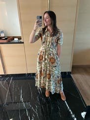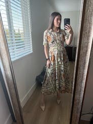 Pattern is fun and unique. Wore it to the wineries, a farm dinner, and work. Styled it with flats and a straw hat, and then heels for a meeting.