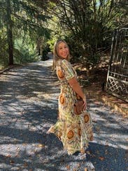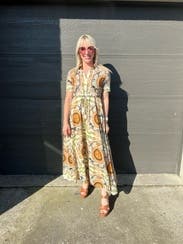 Rented this on a whim, and absolutely loved this dress! This picture does not do it justice. The fit was perfect and the colors were beautiful. Could be worn from Spring to Fall!