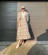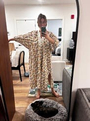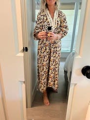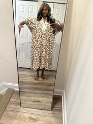 This dress really is a mumu but in a good way. It’s actually really fun to wear and looks super cute with heels. Can easily size down.