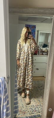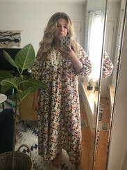 Love this dress so effortless and comfy but makes you look put together! Would rent again when it’s warmer out as it’s pretty thin (not see thru) and the arms are bat wing so you can’t easily wear a jacket with it. I would also size down one or two sizes next time!