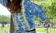 Must rent the matching paints with the sweatshirt for a complete look. Super comfortable and trendy tie-dye with beautiful sky blue and teal colors made for a versatile rental.